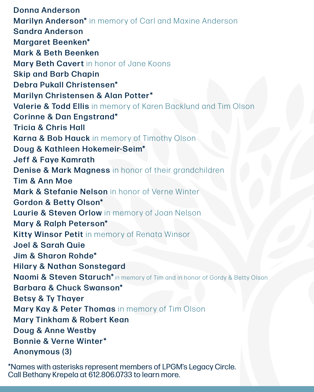 Exciting news! To mark this milestone, a group of special friends of LPGM have generously contributed to a year-end match of $158,762!