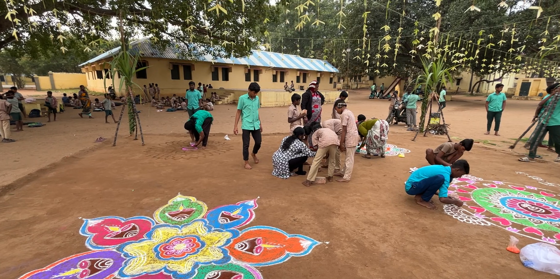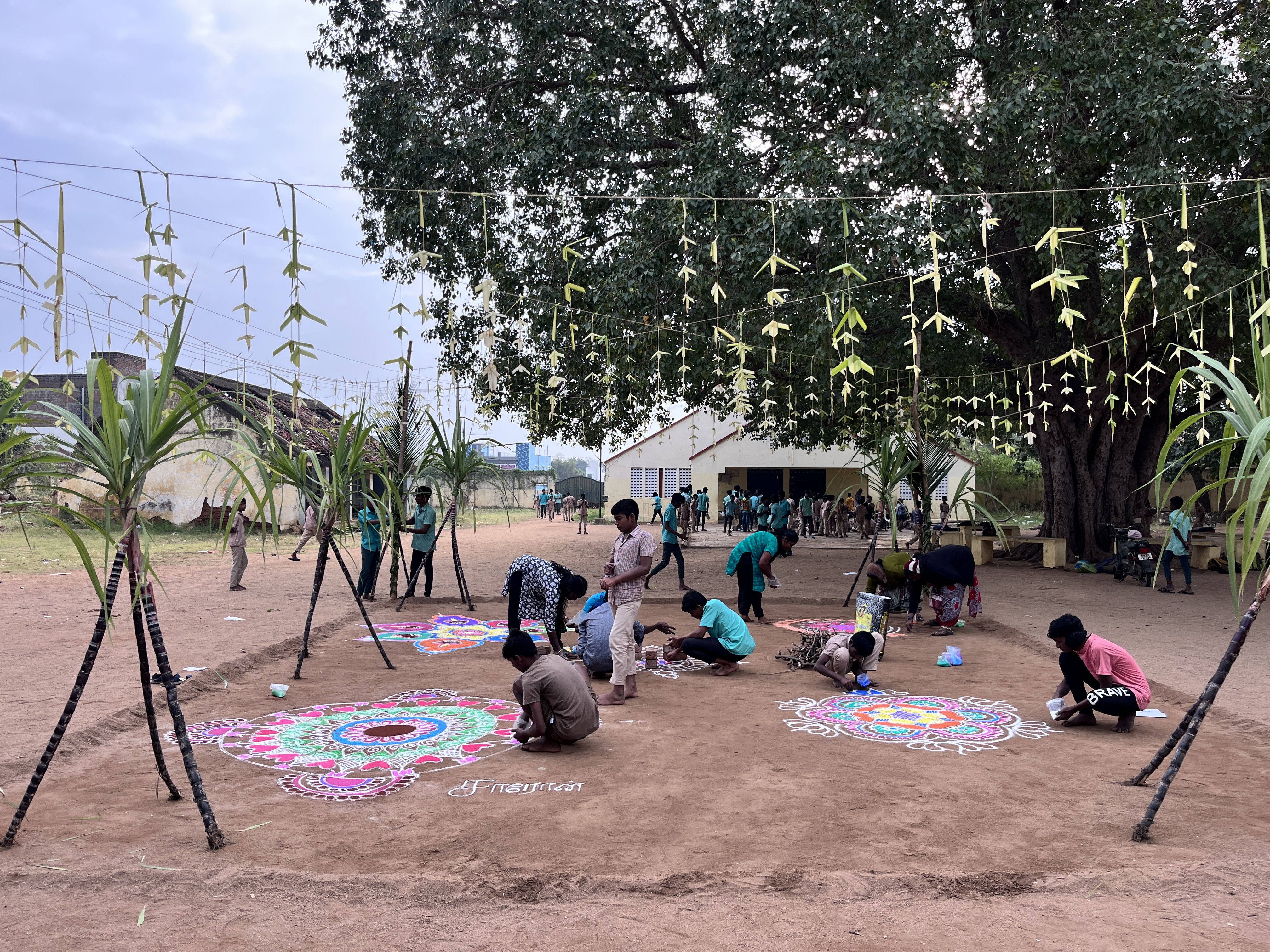 Students celebrate Pongal in their boarding homes by cooking and eating sweet pongal and sugar cane, drumming, singing, dancing, making rangoli kolams, and giving thanks for all that has been given to them, including sponsors like you!